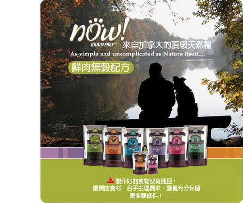 Now! Grain Free鮮肉無穀天然糧是世界上第一個100%採用鮮肉、無穀,且蛋白質和脂肪適量的天然寵物糧,既滿足寵物天生的食性,又減輕了寵物的消化負擔。