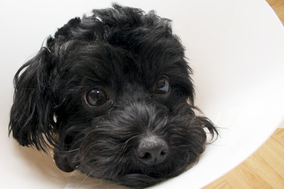 而且貴賓狗果然是一種奸詐的動物,喇叭帶了半天,我昨天才發現她還是可以舔到杜子 =_=